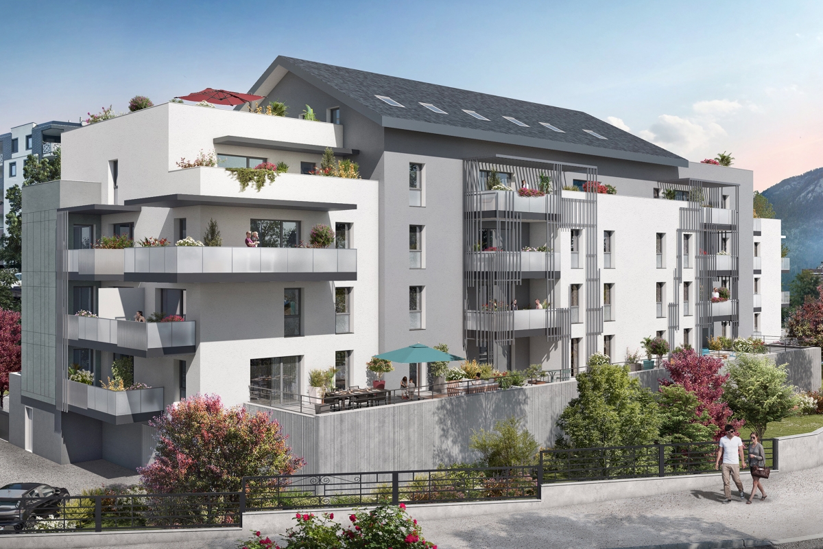 La résidence « Le 1848 » est implantée dans le cœur de ville de Cluses, à moins d’1km de sa gare SNCF, de sa mairie et de ses commerces et services du quotidien. L’environnement de la résidence procure un sentiment de tranquillité et de bien-être. Tout ici est pensé pour votre confort de vie, dans le respect de l’environnement. « Le 1848 » profite d’un cadre de vie idéal et offre à ses habitants un véritable équilibre entre ville et nature. La résidence « Le 1848 », constituée d’un bâtiment de 5 étages disposé en L, est entourée d’espaces verts arborés. D’architecture sobre et moderne, le projet s’intègre parfaitement à son environnement. Les façades alternent tons gris et blanc dans un jeu de contrastes et de volumes. Les derniers niveaux donnent l’effet de « maisons sur le toit » avec des toitures en pentes, plusieurs terrasses accessibles et, sur l’une des ailes, un bardage en bois grisé. Tous les logements présentent de beaux volumes et bénéficient de prestations de qualité. Chaque appartement de la résidence « Le 1848 » est pensé pour offrir une très grande fonctionnalité avec des séjours à grands volumes. Ils profitent également d’une luminosité exceptionnelle grâce aux grandes baies vitrées donnant sur de généreux extérieurs (balcons et terrasses) avec une vue dégagée sur les massifs montagneux. Tous les appartements sont livrés avec des cuisines et salles de bains équipées. Pour un plus grand confort de vie, nos logements sont tous connectés.