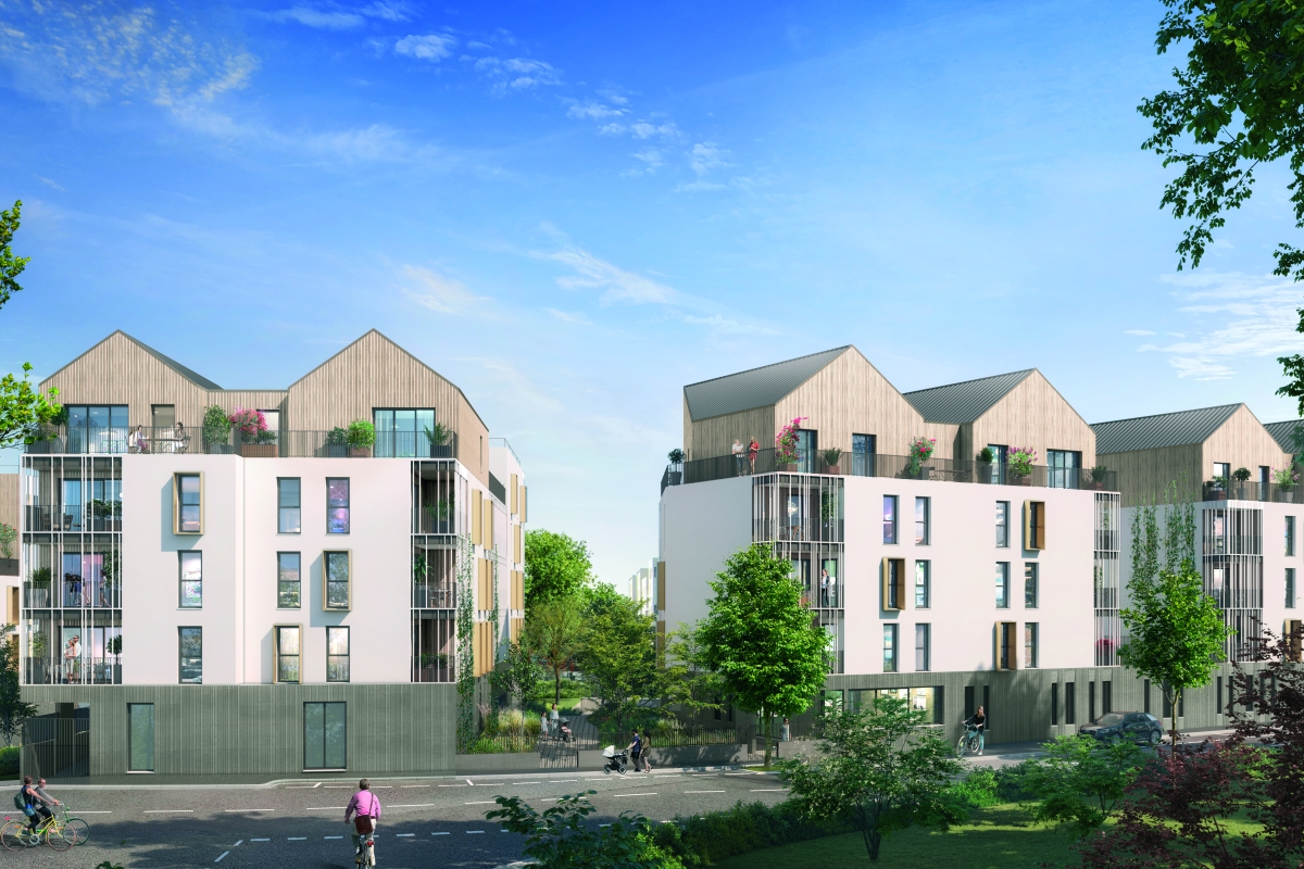 La résidence « Le Tivoli » innove et opte pour une ossature porteuse et des charpentes entièrement en bois pour les maisons sur le toit. Le choix du bois permet de bâtir un lieu de vie plus sain, vertueux en carbone tout en réduisant les nuisances de chantier et il s’agit de plus d’un matériau renouvelable. Avec ses sentes aux plantes luxuriantes, son cœur d’îlot, son espace de culture partagée, ses trames vertes verticales et ses réservoirs de biodiversité, « Le Tivoli » s’inscrit en harmonie avec les espaces publics des Frais Lieux et la Promenade des Pommiers. L’espace jardin partagé, animé par les résidents est un lieu de convivialité au service de la biodiversité. On y retrouve des bacs à potager partagés, une palette végétale sur le thème “ cueillir et manger ”. Cet espace de partage permet aux résidents et à leurs enfants de se sensibiliser au végétal à travers des moments de pédagogie et de détente. L’ambition architecturale du « Tivoli » est simple : incarner de façon contemporaine les nouvelles façons de vivre en contact avec la nature. L’îlot central, ouvert, crée de nombreuses continuités paysagères, véritables percées visuelles et végétales. La composition de la résidence privilégie des logements traversants et/ou à double orientation. Architecturalement, le jeu des matières, la verticalité des motifs, des brise-soleil et des garde-corps créent un dialogue avec la nature des espaces végétalisés. Tous les logements présentent de beaux volumes et bénéficient de prestations de qualité. Les derniers niveaux, comme posés ou suspendus sur les bâtiments dans un jeu d’attique, sont constitués de « maisons sur le toit » en habillage bois. Ces « maisons » bénéficient de grandes terrasses privatives qui permettent d’admirer la vue alentour. Deux d’entre elles profitent d’un espace végétalisé avec pelouse et jardinières. Enfin, les toitures des bâtiments sont engazonnées. Ces « prairies » urbaines sont de véritables refuges de biodiversité sauvage et spontanée. Ils représentent des écosystèmes accueillants en milieu urbain et donnent une nouvelle dimension à l’architecture contemporaine.