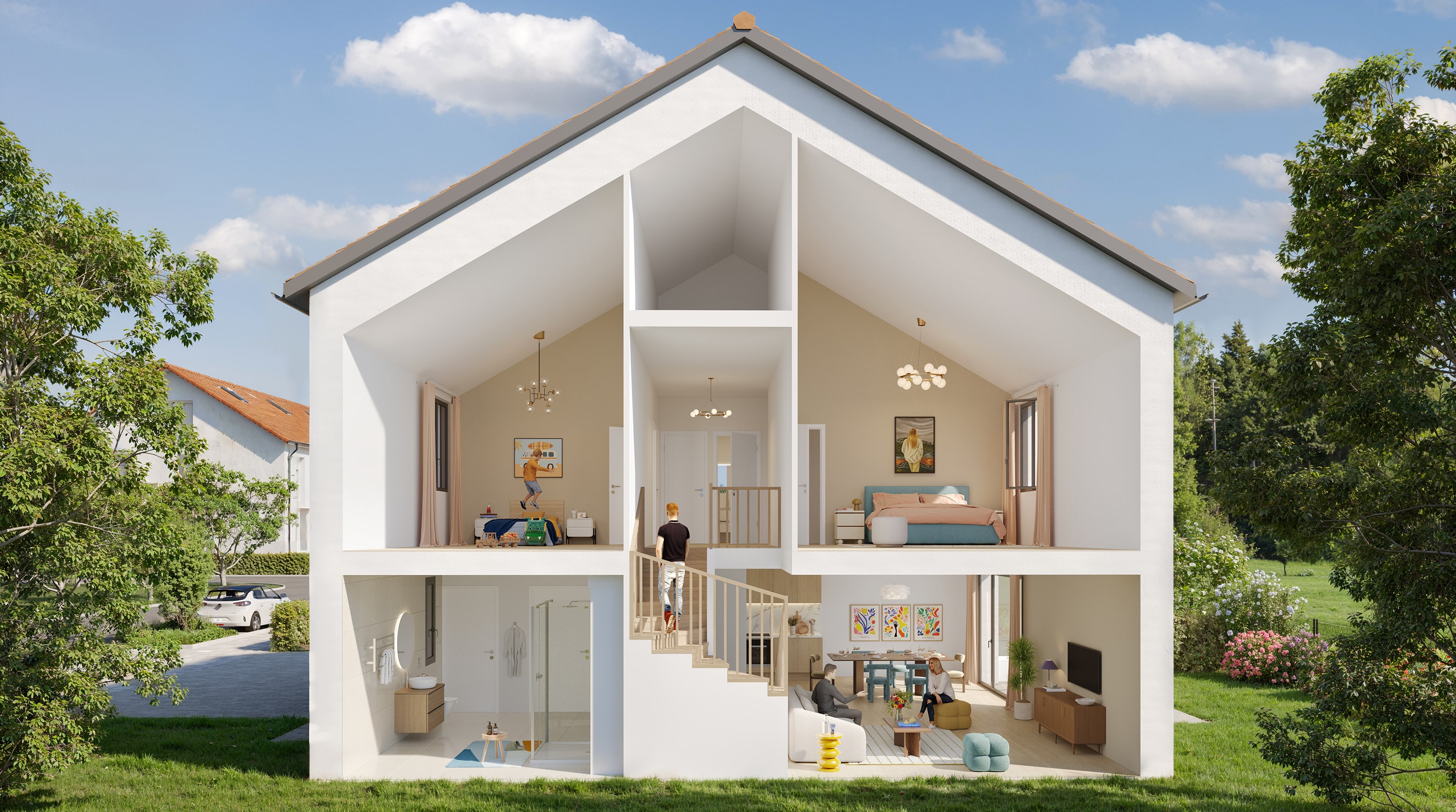 Des appartements neufs du 2 au 4 pièces, lumineux, fonctionnels, avec des espaces à aménager à votre goût.