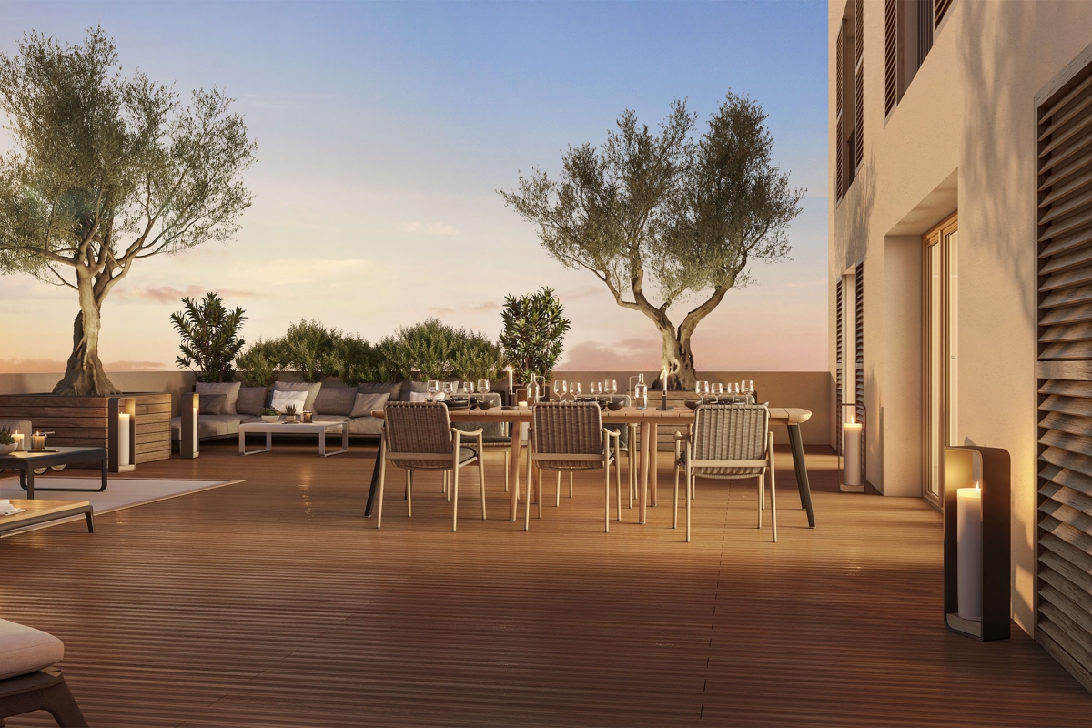 La résidence "Révélation" est composée d’un ensemble composé de 5 collectifs avec un grand espace central boisé, de beaux jardins et des cheminements piétonniers. Ces espaces de verdure apportent une réelle quiétude à tous les résidents. L’uniformité architecturale du projet, qui se veut sobre, contemporaine et surtout ancrée dans son territoire, se retrouve dans les matériaux utilisés : façades de teinte claire inspirée de la brique rose toulousaine et volets à persiennes en bois. Les bâtiments présentent des épannelages variant du R+2 au R+7 maximum, cette variation des volumes permet de dialoguer avec la nature existante et d’optimiser l’implantation des logements et des extérieurs. Par sa dualité entre modernité urbaine et "campagne" apprivoisée, "Révélation" épouse parfaitement l’esprit de ce quartier en pleine mutation. Chaque logement de la résidence est pensé pour offrir une très grande fonctionnalité avec des séjours de grands volumes qui profitent d’une luminosité exceptionnelle. Tous bénéficient d’un extérieur (jardin privatif, loggia, balcon ou terrasse) avec pour cadre le paysage environnant et son omniprésente nature. "Révélation" est d’abord pensé comme un grand "parc" dialoguant avec le poumon vert qu’est le Faubourg Malepère. Entre ville et campagne, l’un des principaux enjeux du projet a été de préserver l’esprit et les ressources naturelles de ce site exceptionnel : grandes clairières, prairies, bosquets naturels, nombreux arbres… Dans cette démarche de prolongement végétalisé de l’espace public, tous ces espaces ont été conservés pour le bien-être des résidents.